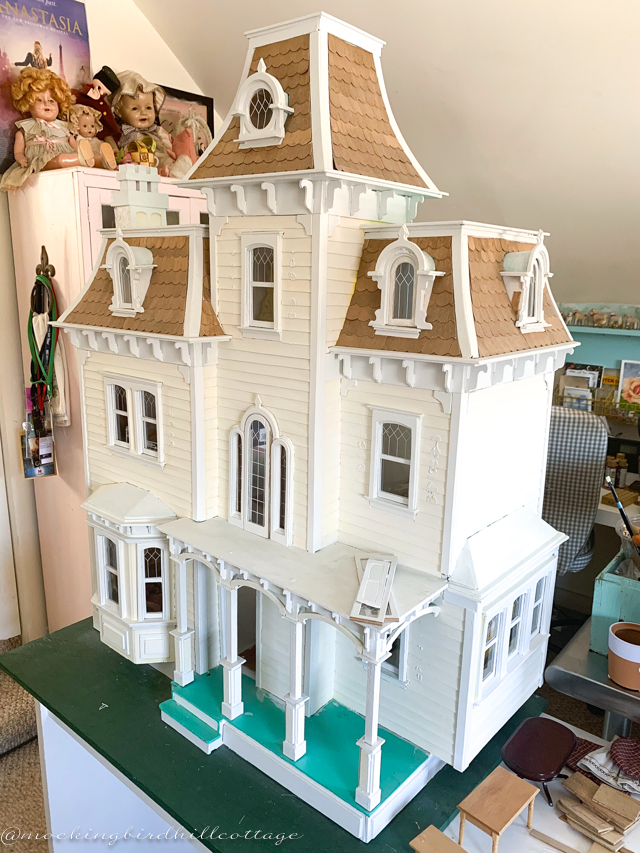 The dollhouse wallpaper that arrived the other day. Sigh. It’s a bit lighter and brighter than this. I tend to feel frustrated when I unwrap a package of miniature wallpaper. It’s hard to gauge the size of the print from a little sample on a web page. I may do some research today and order something brighter – especially for the hallways. The stairs are so dark that I feel the need to counteract that darkness with cheery color.