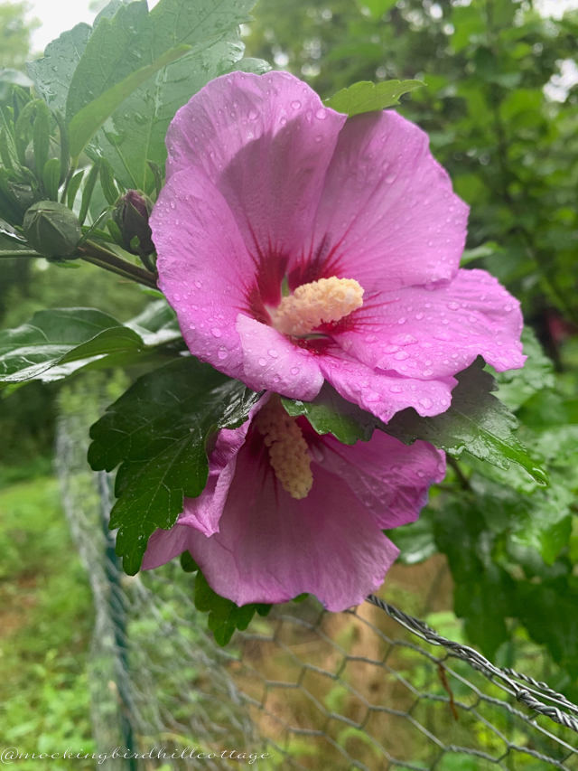 Your Rose of Sharon is quite lovely…very pretty coloring. My hibiscus took a very long time to come out of hibernation,,.but it’s grown quickly, and buds are starting to show.