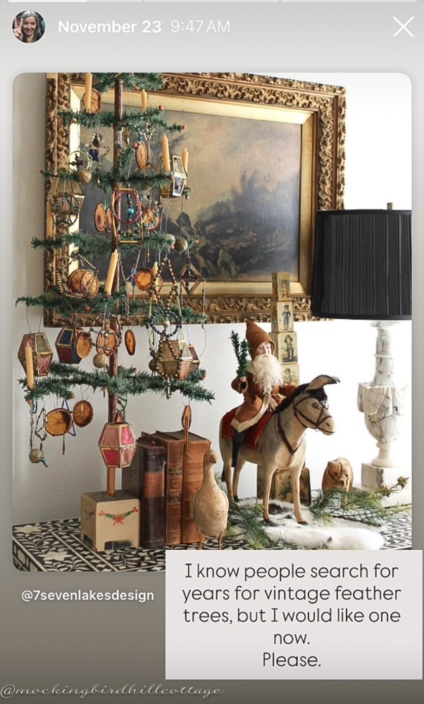 Okay. One day, I was scrolling through IG looking at feather trees, and I posted this in my stories: