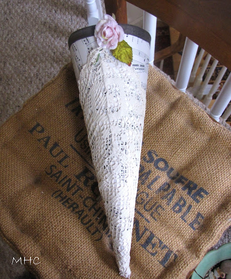 Your cone looks wonderful, I love the way you put the lace over the sheet music……have decorating!!!