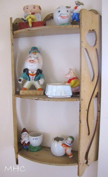 Love the colors of the frame and that cute shelf, and oh, what cuteness you have in that shelf! Claudia! I love all the Humpty Dumpties and things. SO cute!