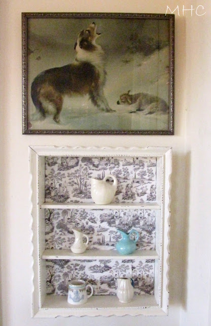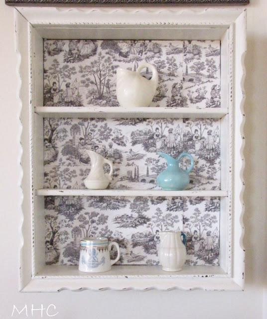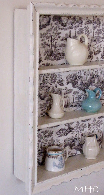 What a darling shelf and I love the toile backing!