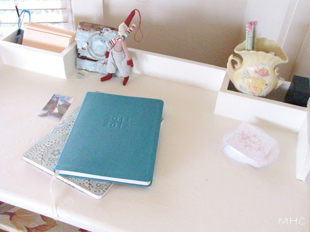 I also love that you have your new display shelf above the desk as well as your chippy blue piece displayed on the deask top.