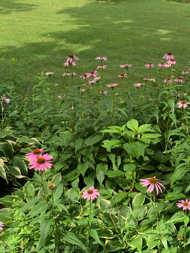 I love when you post pictures of the grounds around your cottage, and inside. You have so much going on in all those trees and bushes. I love coneflowers too. Do you see a lot of butterflies? Glad your back is feeling better. Hopefully the humidity will disappear soon. Thank God for air conditioning!