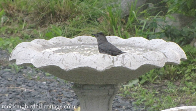 Like Sue, I am not familiar with Catbirds either. They are pretty little birds though…not colorful but interesting tufts on the head it looks like. We moved our birdbath too recently and ours was found this past hot and sultry weekend! They are fun to watch getting all wet and throwing the water around. ~Hugs, Patti