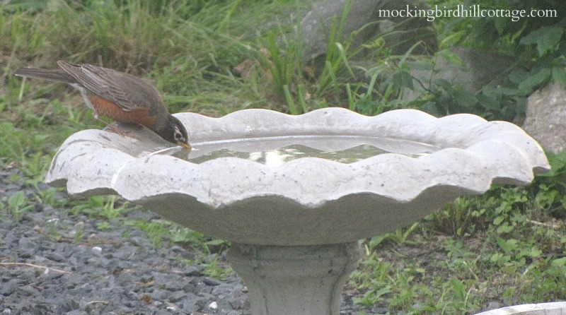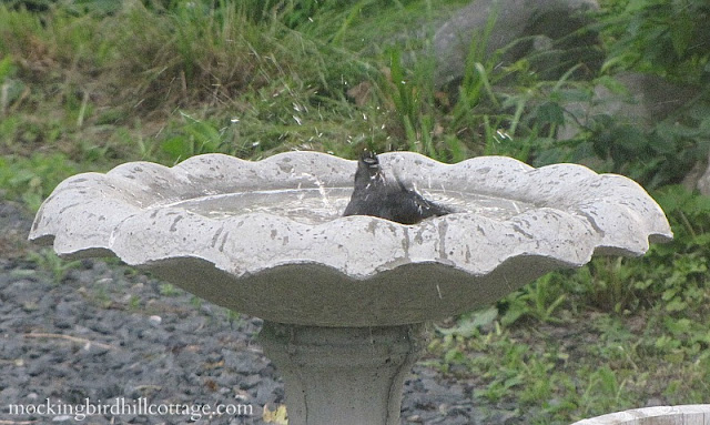 I know, those catbirds love it! I haven’t yet purchased a good birdbath … just using pottery basins and fill with water … but at least they do the trick!