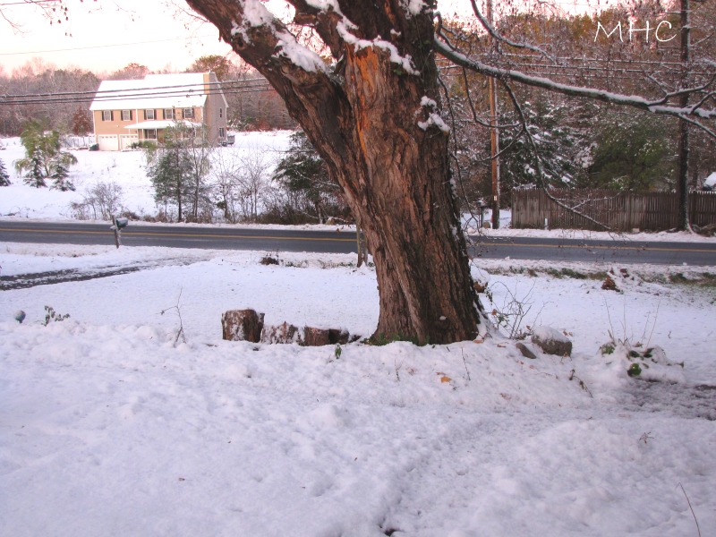 Hope the trees and bushes are ok after this very early snowfall. Very relieved Don got home safely.