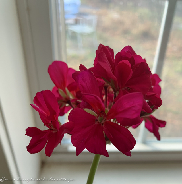 I’ve had this geranium for years. I keep it on the porch during spring and summer and move it to the living room over the winter. But, it actually does better indoors. Within a week of bringing it back inside it bloomed. So, my sweet little geranium, you are now an official indoor plant. (It took me way too long to figure this out!)