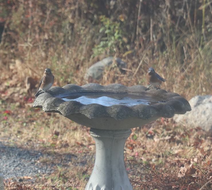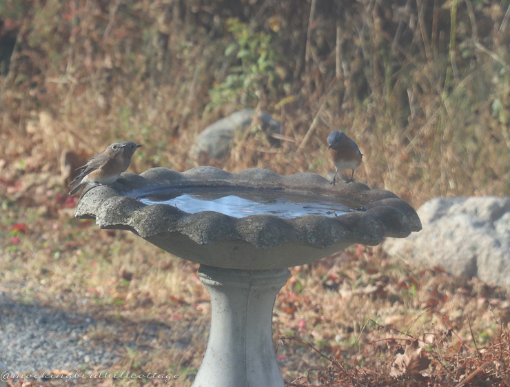 In the meantime, I grabbed the camera the other day when I noticed bluebirds in the bird bath. They were stopping for a drink on their way south.