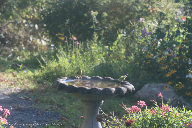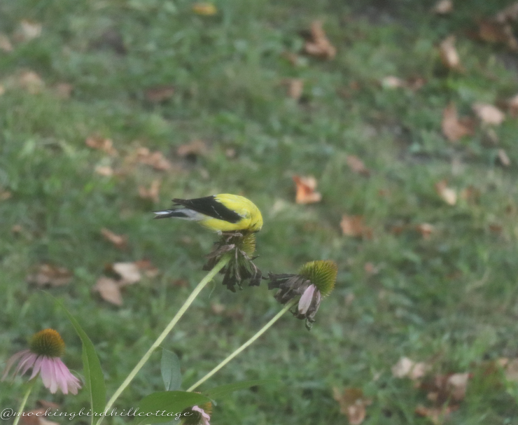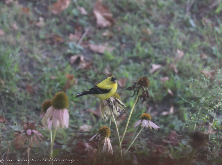 Goldfinches are beautiful and they happen to be one of Don’s favorite birds. I wish he had been here to see these bright flashes of yellow, flitting throughout the gardens.