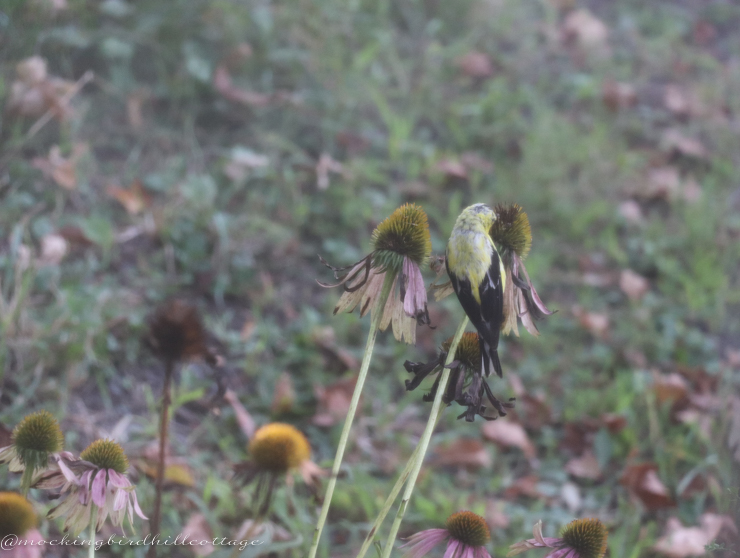 Three of them were in this patch of coneflowers, munching on seeds.