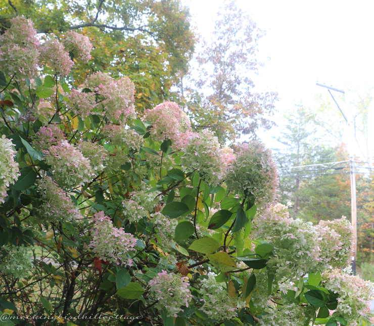I love that limelight hydrangeas turn pink. It’s the kind of thing you’d expect to happen in the spring – pinkish pastel flowers – but no, limelights turn everything upside down and give us this delicate pink in the fall. What an unexpected treat.