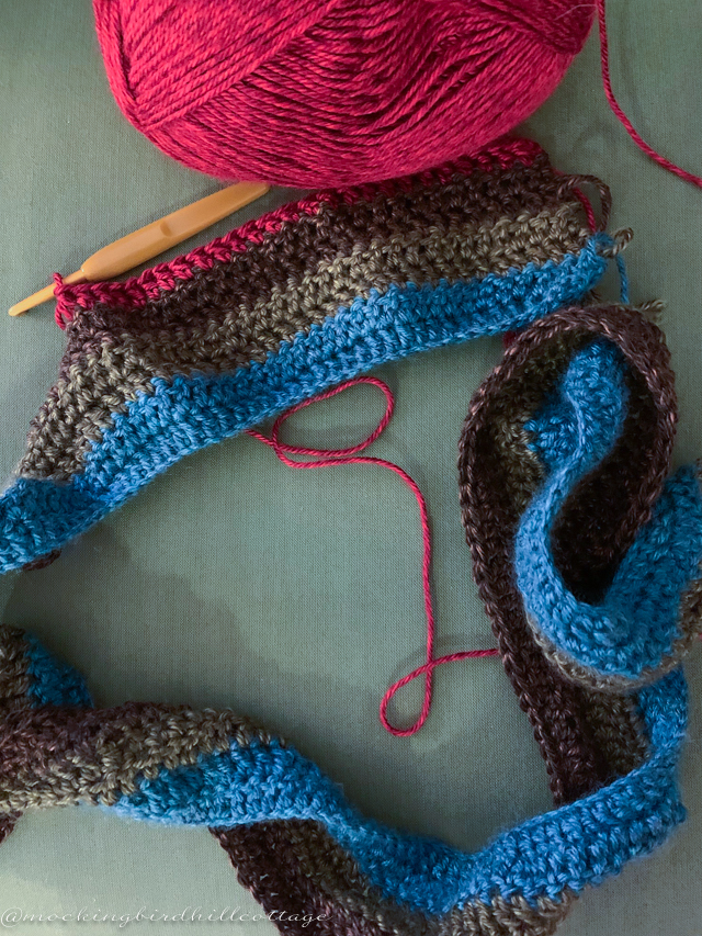 I showed my crochet progress to Don this morning. He had requested a pop of red. I now have strict instructions to crochet one row of red, rather than two. I was already going to do that per our initial conversation at Michael’s. I love that Don has a vision for this. He’s pretty darned adorable.