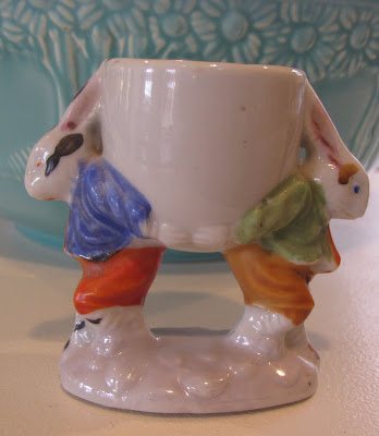 Since it is Spring and Easter is coming, I thought I’d share some of the egg cups from my collection. Most of my egg cups are what are called figural egg cups. I am entranced by the whimsical figures on each of them – they take me back to my childhood.