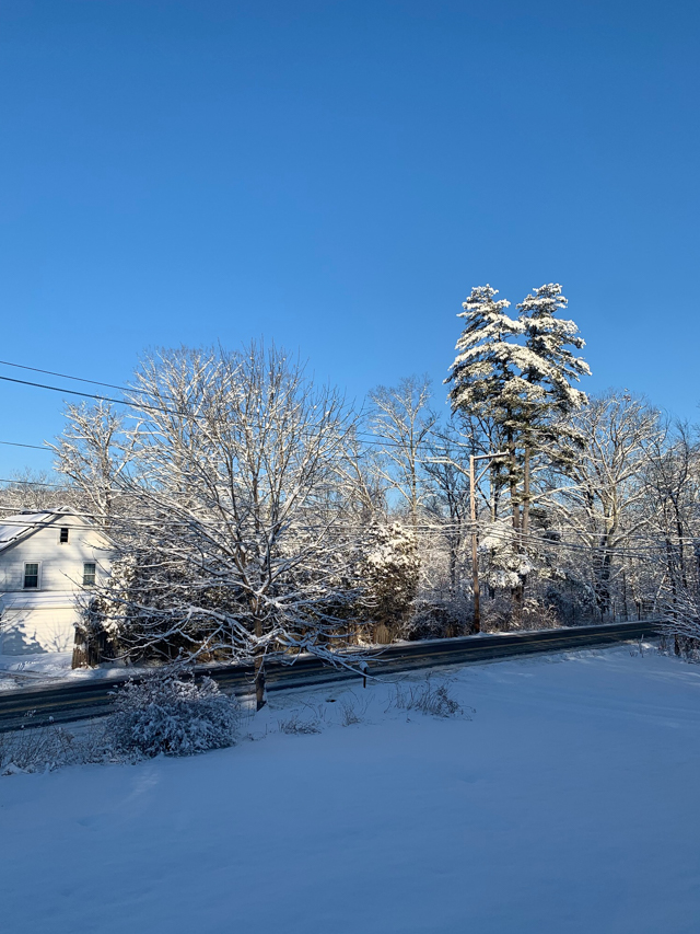 This is the sky the morning after the last snow. We were out early shoveling and snowblowing, The one saving grace? The spectacular sun and clear blue skies. No filters on this pic – this is exactly how it looked that morning.