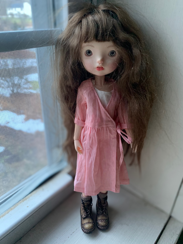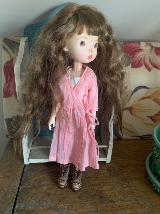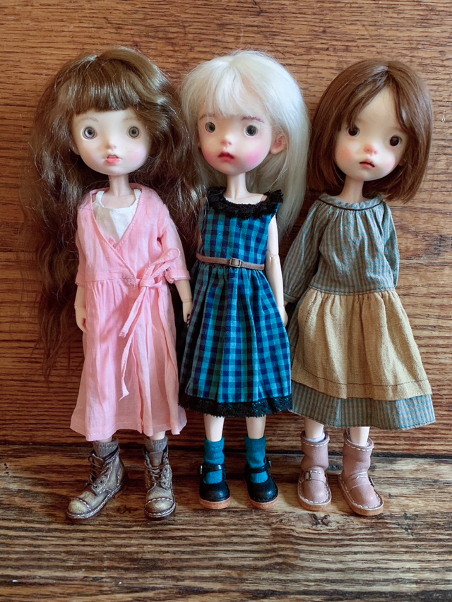 I am so charmed by the Landoudou and Little Keiko doll heads. The molds they have carved are charming. They are on the exact same body I use for many of my Blythe dolls, but the difference in head size makes it seem as if the body is smaller.