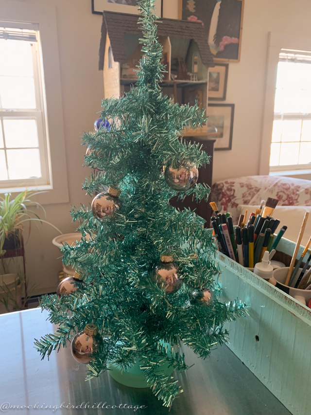 The little tree in the studio. I think I got this at Target years ago. I had to be in Hartford for the holiday season and I needed some holiday cheer in my apartment.