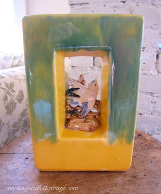 Eeeek!!! I love your McCoy collection so much, especially those beautiful tall vases. The swallow also is such a beautiful accent to McCoy. Auctions are too intimidating for me! But you are right about the thrift shops, there is a good chance of finding collectible pottery of all kinds there. Your McCoy collection is truly enviable and beautiful!! Your photos make it truly shine.