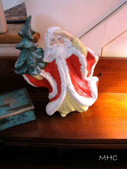 I love that Santa! Everything looks so pretty…just simple touches here and there add such a festive tone. Great picture of your husband….So what kind of music does he write??