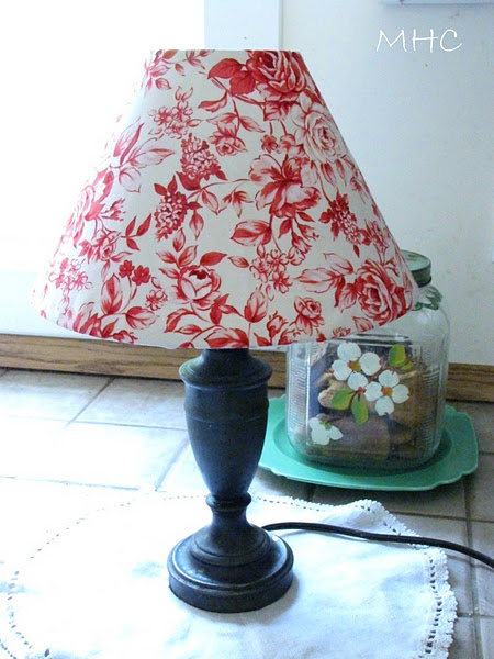 Tip#5: Grab that glue gun and decorate your lampshade! Take a run-of-the-mill lampshade and add buttons or flowers or fabric or burlap or vintage hankies and change it out completely. That’s what I did with the kitchen lamp. The shade was old and stained and one day I grabbed some fabric from my stash and covered it. It made a huge difference.