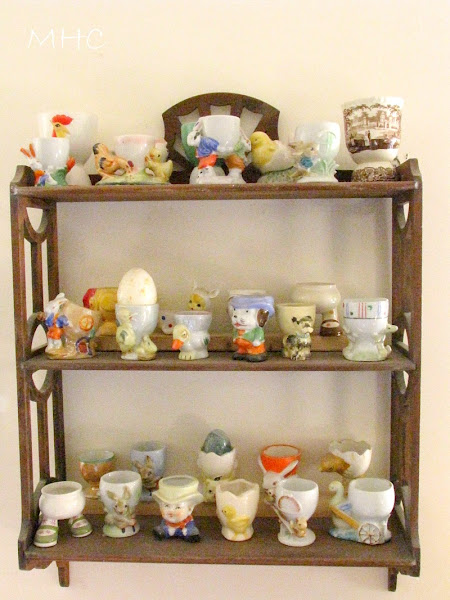 Look for interesting pieces on which to display your collections. This shelf is a favorite of mine; I picked it precisely for this purpose and I think it enhances the egg cup collection. The rest of my egg cups are on a sweet little shelf in the den: