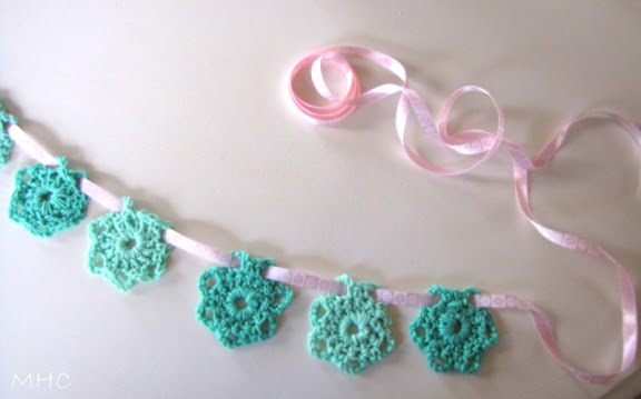 I love finding all sorts of uses for pretty crochet flowers since I make them all the time! i have a sweet collection that could easily become something like this garland…