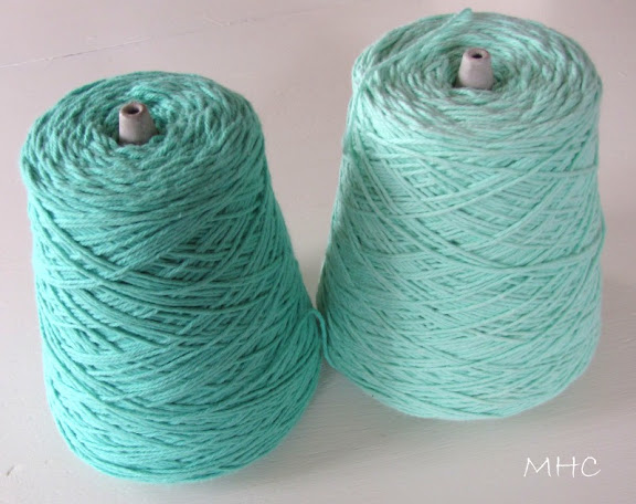 These are cones of Peaches & Creme Cotton that I had in my stash. I once had this in several colors – I used P&C to make dish cloths. The reason I chose P&C for this project is the texture of the yarn. It’s a bit stiffer (in a good way.) More on that later. I crocheted about 12 of the flowers – 6 in each color.