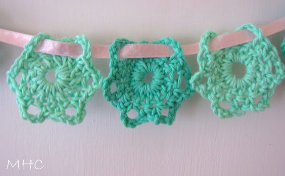 I love finding all sorts of uses for pretty crochet flowers since I make them all the time! i have a sweet collection that could easily become something like this garland…