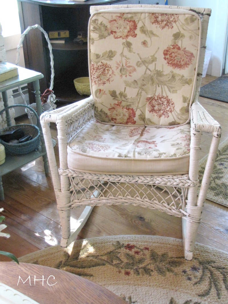 This wicker rocker is vintage. I paid about $60 for it, due to a slight bit of damage to the wicker in the back. At the time, it was no big deal. Over time, more and more of the wicker has broken.