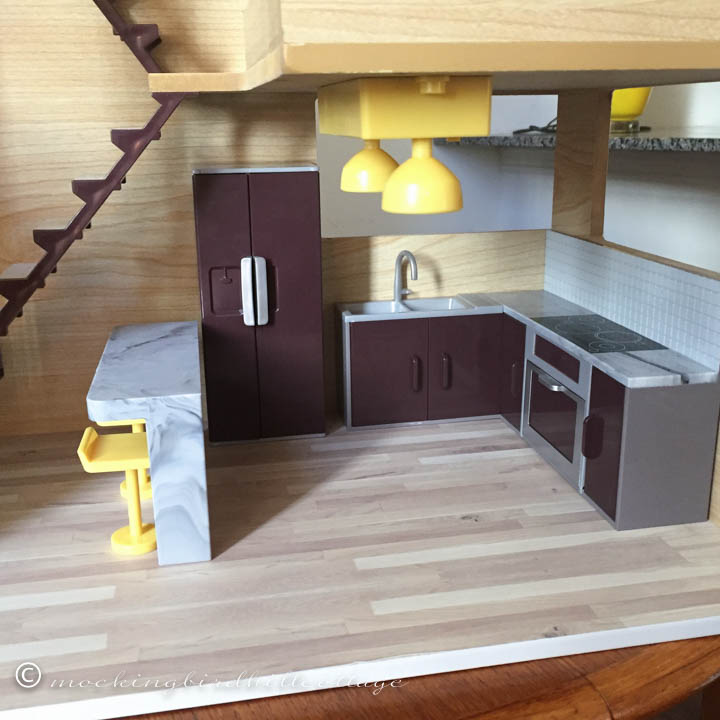 The Lori Loft was available at Target many years ago – I got it when I was away working in Hartford, so it’s at least 13 or 14 years ago. It was $40. I thought it would be fun to experiment with a modern dollhouse design.