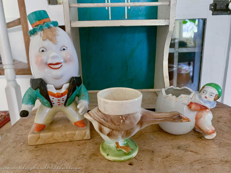 A gentleman egg cup. This is a tall egg cup. In some versions of this egg cup, there are holes in the head that enable it to function as a salter. Mine doesn’t have them. Also, he’s supposed to be holding a walking stick, but that was missing when I purchased it.