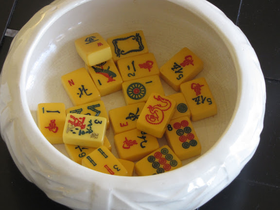 They are both lovely pieces. I love the way the tiles look in that bowl. Visuals like that are always a treat to see. My sister in law taught all of her neices and nephew how to play Mahjongg one summer. They thought that was a lot of fun.