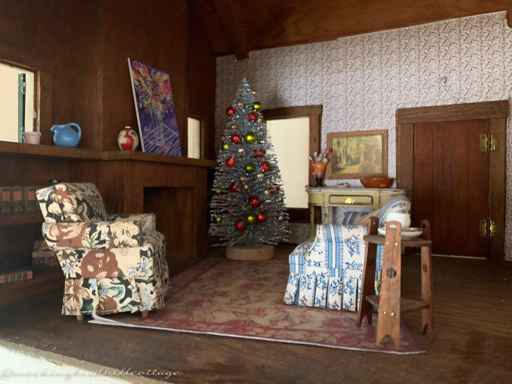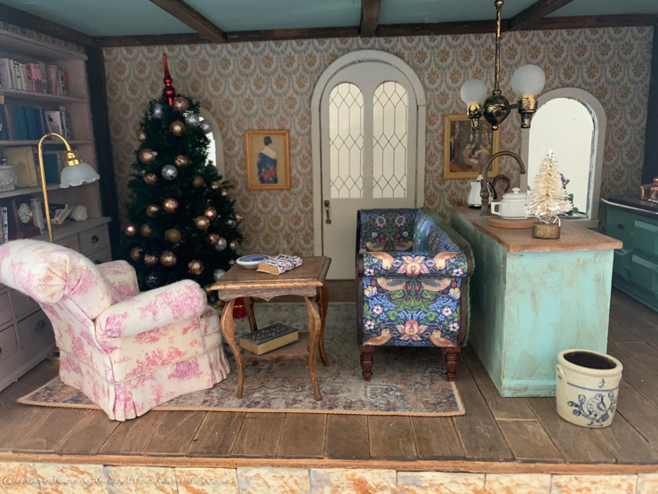 Dove Cottage. Just like life-sized houses, the furniture needs to be moved to accommodate the Christmas tree.