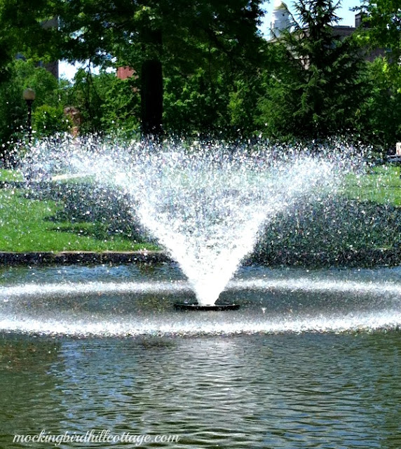 I walked around the park yesterday, then sat on a bench and read my book. This fountain was in front of me and I couldn’t resist trying to capture it with my iPhone. It looks completely different in person, but this is what happens when you try to digitally capture flowing water. Sort of neat.