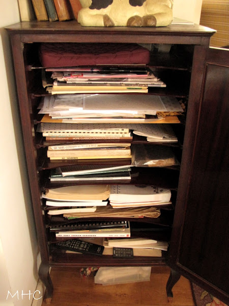 I bought this large cupboard at auction a couple of years after we moved to MHC. It has a big presence in the room. I knew it would work and I knew it would make the room seem larger. It does.
