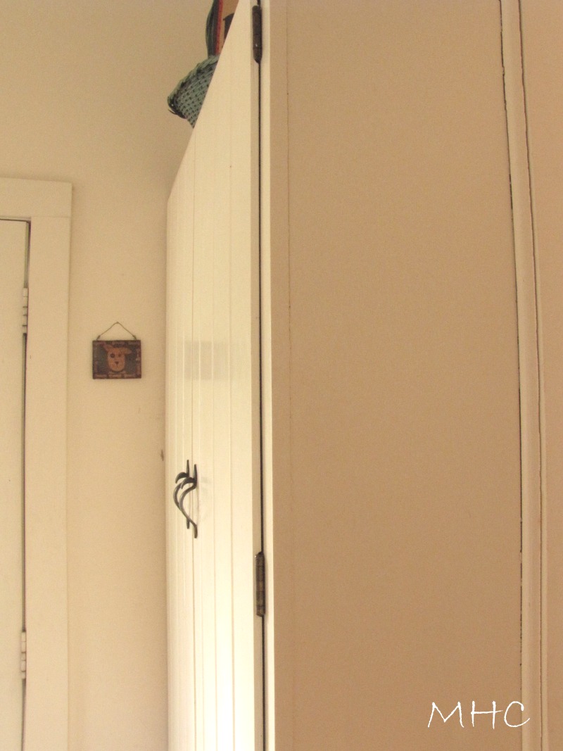 Right inside the door is another door. If you didn’t know better you would most likely assume it was the linen closet. But you already know we don’t have a linen closet.