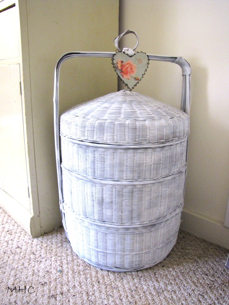 I love the basket, it is a nasty job, spray painting…..you did really good for one coat!