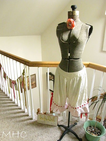 You’re right if you guessed the mirror hanging on the stairway landing. Actually, it’s not new. I’ve had it for years. My mom and I saw it in a little antique store in Rogers City Michigan (my parents used to live there) and she bought it for me. Somehow or other, during the move to this house, it ended up in the infamous shed. Don rescued it and said we should have it in the cottage. He was right.