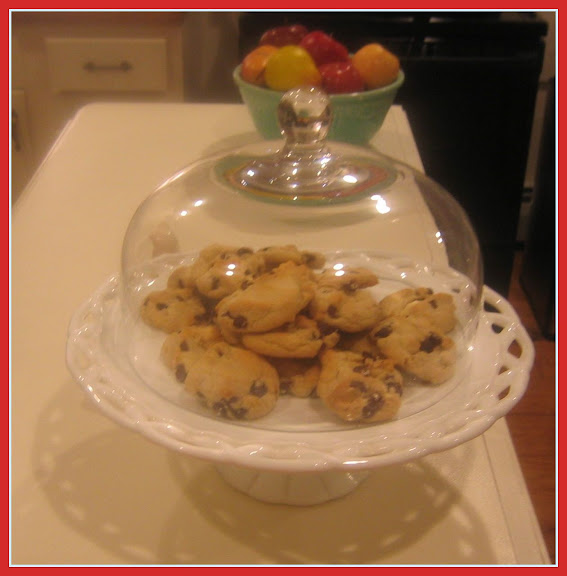 Yummy! I made some chocolate chip cookies yesterday and they are quite tasty. I do like seeing them under my glass dome on the new island. They look so welcoming and inviting in our kitchen. There is a problem, though – I keep eating them.