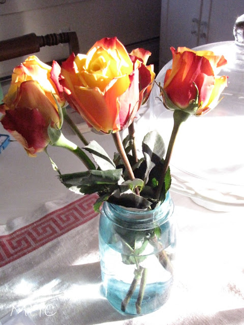 Claudia, I love the roses in the old jar, sweet. We have snow also. Rain/snow and whatever else is headed our way.But the sun is trying to shine. I love that. Take care , stay safe and warm. Smiles, Susie(She Junks)
