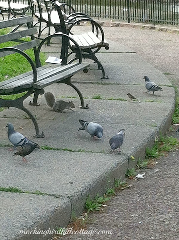 Looks like some sort of meeting, doesn’t it? I’m not one of those people who disparage pigeons. I like pigeons. And all other birds. And adorable squirrels.