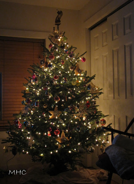 But this time of year, I get the real thing. Right in my home. There’s nothing better. That’s why we always have a real tree here at MHC. Pine heaven. I don’t want an artificial tree. I love picking out a tree at our favorite nursery and that each year’s tree is different in size and shape from all the others we’ve had in previous years. Every year we say, without fail, “This is the prettiest tree ever!” This year’s tree is particularly well-shaped.  Let me show you.