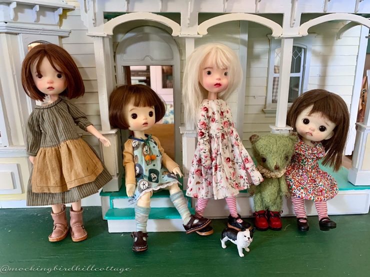 I have no desire to work on this dollhouse, it seems, but it does work well as a backdrop, especially for the smaller girls.