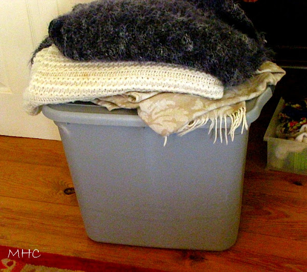This ugly bin is in our den. In fact it is just to the right of the dollhouse on the other side of the closet. This bin has been sitting in the den for a few months. Do you remember when Don was having yard sales this summer? I was away working in Wisconsin. In this bin are all his CDs and old books that were for sale. (By the way, I looked in the bin the other day and some of my CDs and books were in there. He’s lucky he didn’t sell them.) Anyway, I’m sick of looking at it and am going to strongly encourage my husband to clean it out and put it back in the shed where it belongs. It is directly across from me as I sit in my chair and blog.