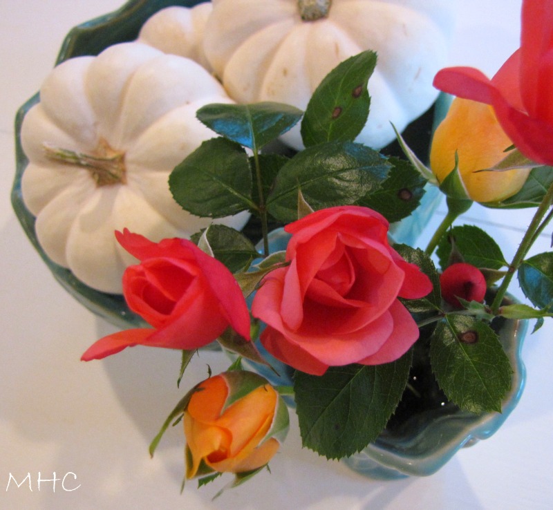 I love the photo of your roses with the white pumpkins.