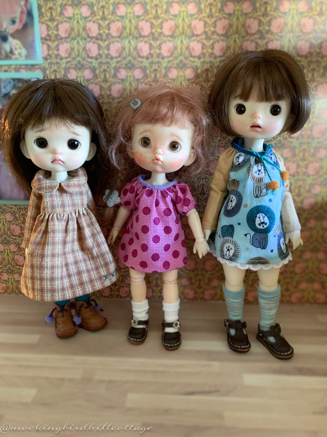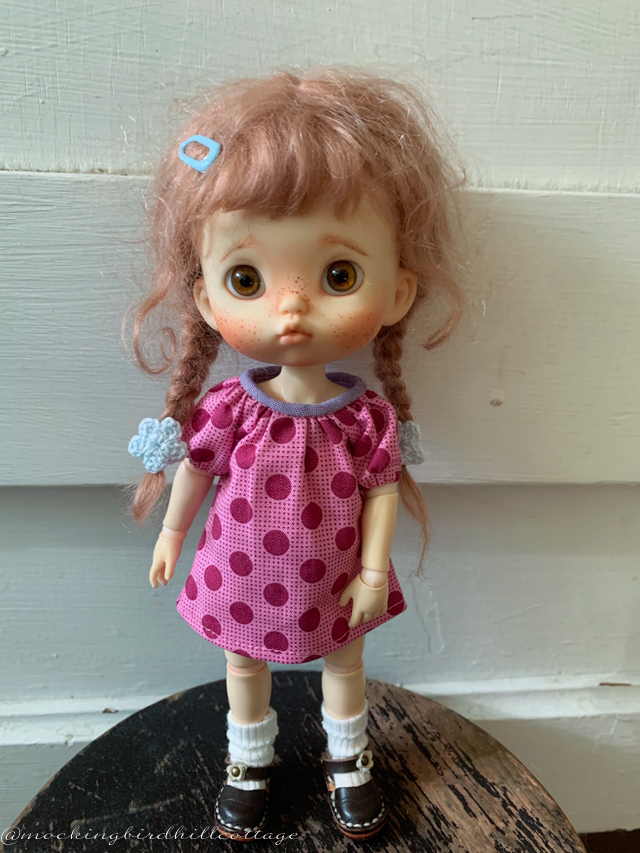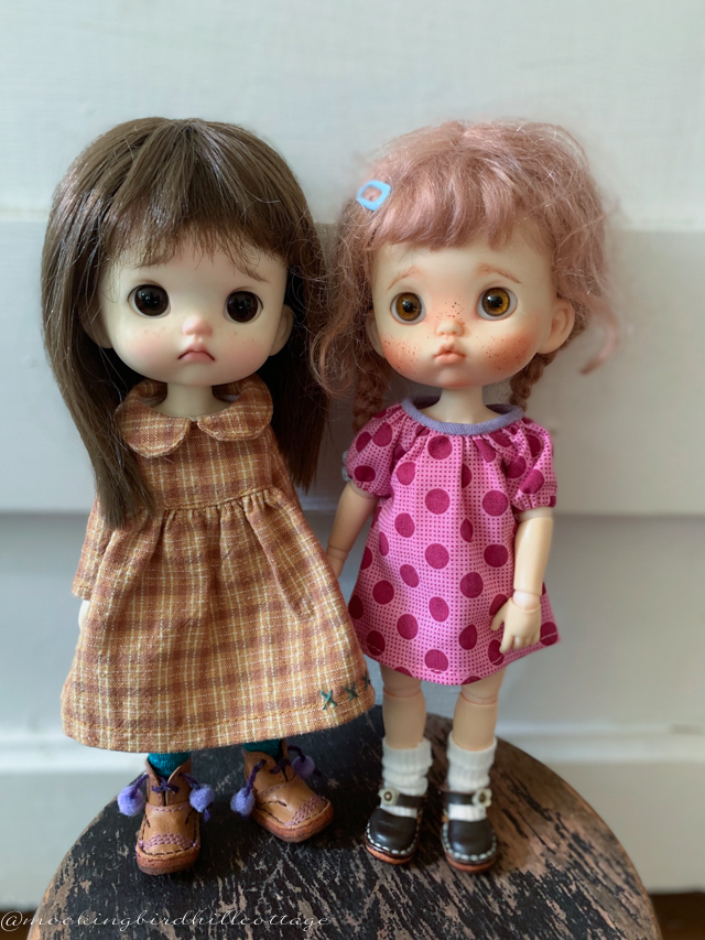 In my mind, Lily is the older sister of Wren. Now, let’s not forget that I sold Wren – very reluctantly – when we needed some money. I sold her to an IG friend who, at the time, said if I ever wanted her back I could have her. A year or so went by and I discovered I did want her back. Lily looked lonely. And I missed little Wren’s mini-me worried face. I sold some things on Etsy and saved up the money for her and I finally was able to welcome her back to the cottage.