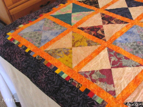 Love the quilt. Batiks are favorites of mine as well. Still have not restarted scarf. I seem to make a 90degree turn and I lose the shape!!!!
