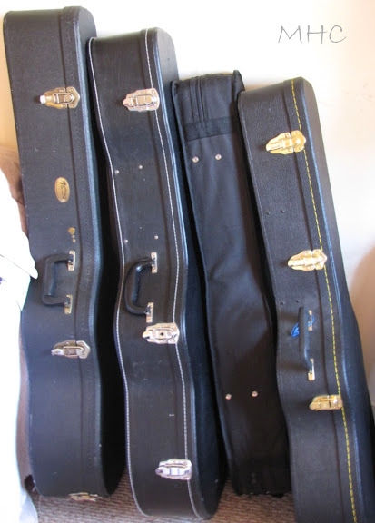 Guitars. There is also a mandolin – it’s just not in the photo.  Also not in the photo: speakers, our green farmhouse table, the desk and computer and a chair. Maybe in another post?