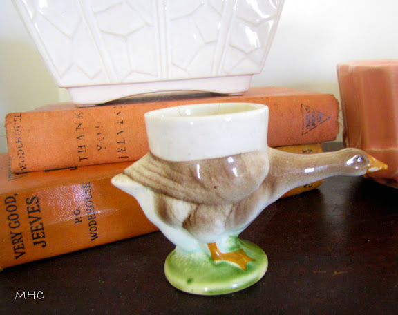 While out and about looking for a gift the other day, I came across this little egg cup. I’ve posted about my collection, but the truth is I haven’t added to the collection in a long time. They seem to be getting harder and harder to find. So when I saw this goose egg cup, I squealed with delight. It is so charming – it has a made in France stamp on the bottom. And it was only $4.00.