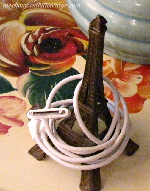 Love it! My cords are a mess and I just let them have their way I guess. Still and Eiffel Tower holder might work! Hugs, Linda
